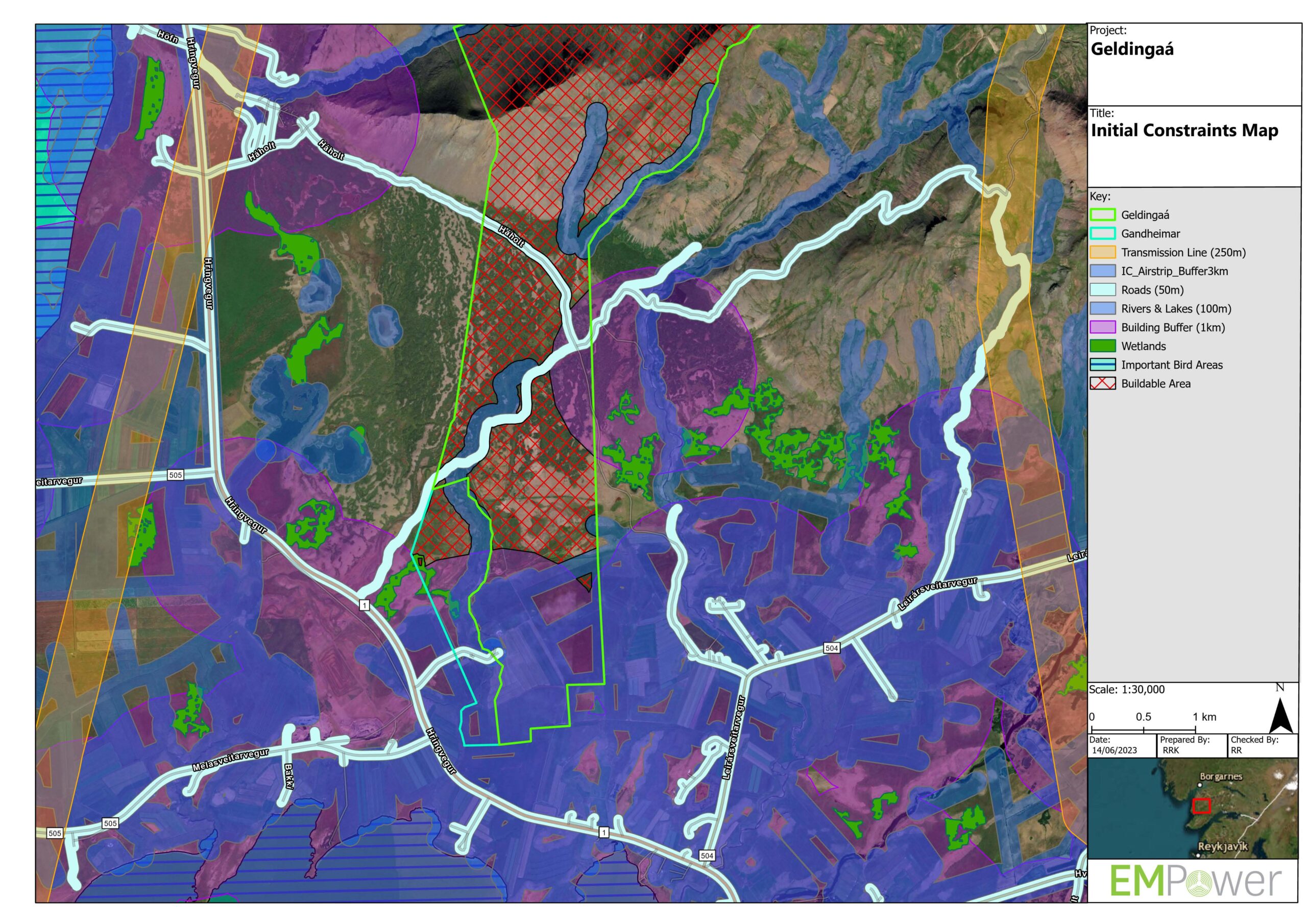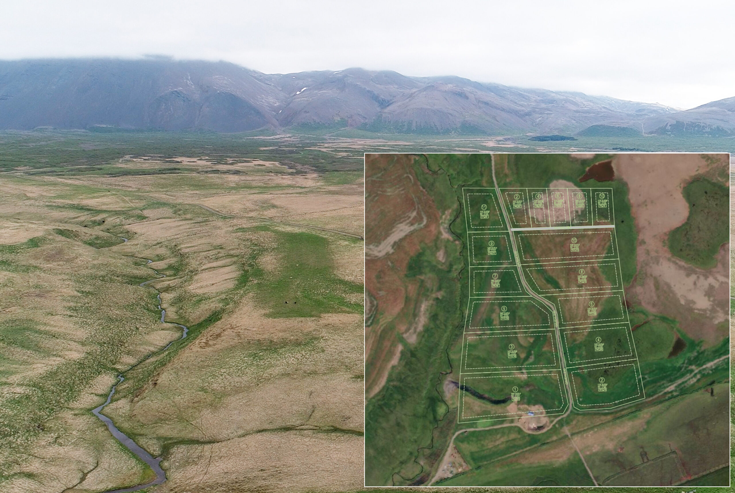 The land of Geldingaá is estimated to be around 1600 hectares in size and is geographically very diverse, with extensive sand dunes and flatlands, partially covered with birch scrub in mountainous areas. It offers various interesting possibilities due to its size, location, and exciting connections to infrastructure.
