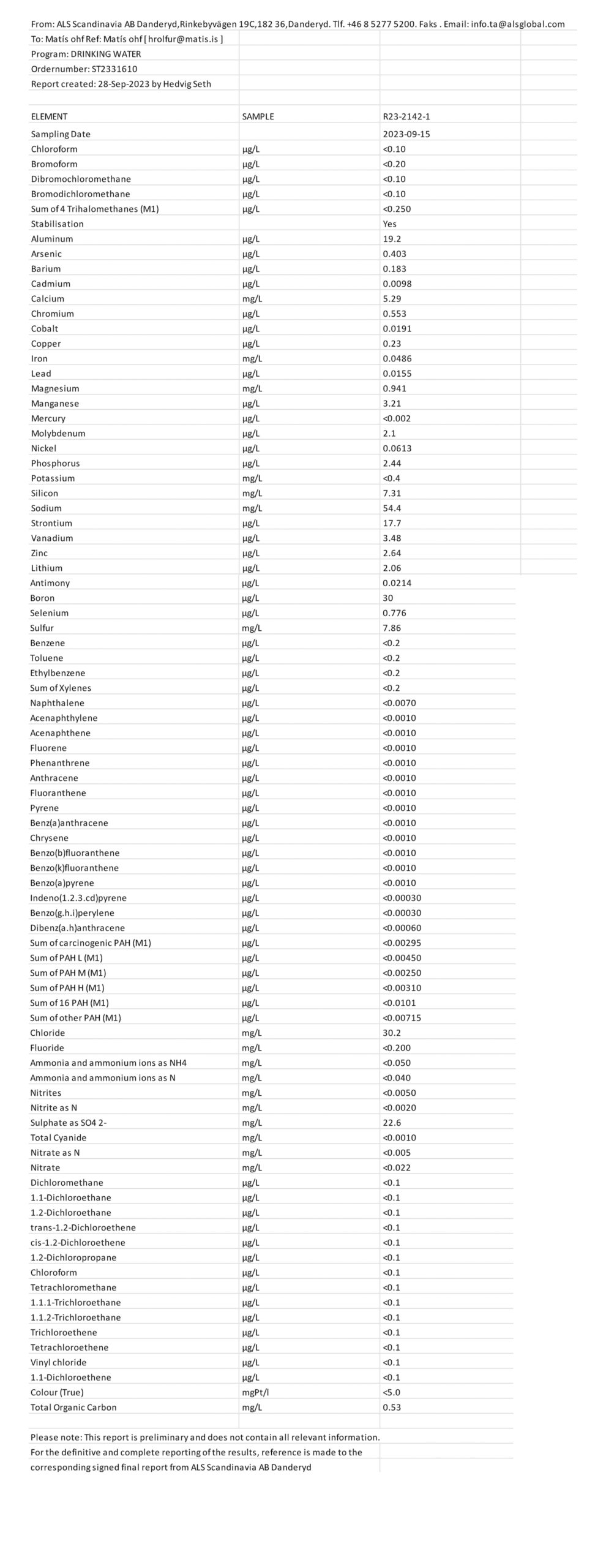 Research by both MATÍS and ALS Global has shown that the water is very clean and rich in minerals and has a ph value of 8.8.